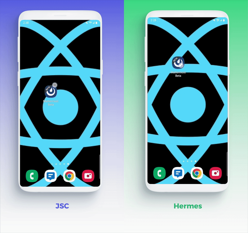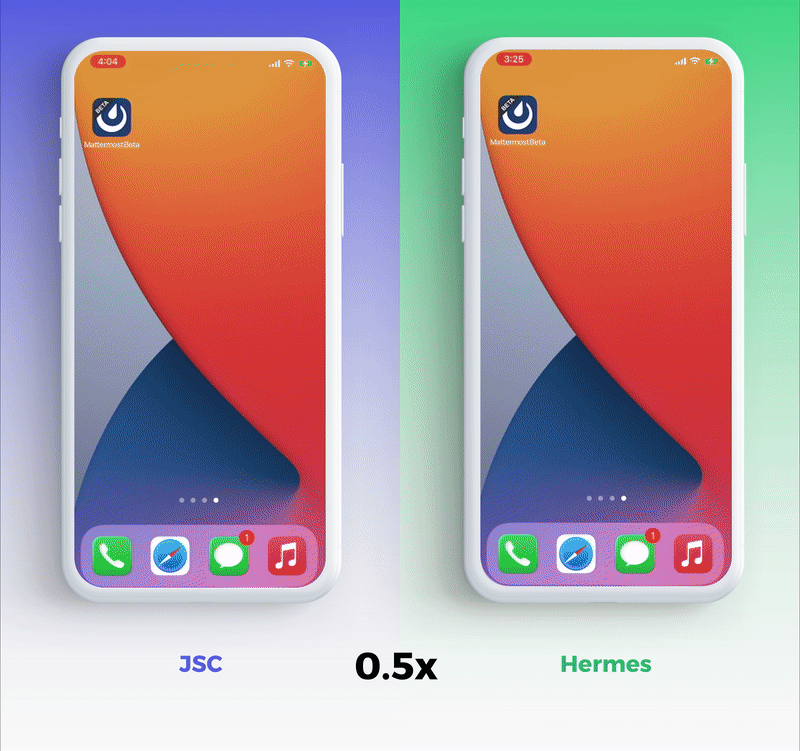 TTI (time to interactive) to czas od uruchomienia aplikacji do momentu, w którym użytkownik może z nią współdziałać. W tym benchmarku definiujemy go jako czas od naciśnięcia ikony aplikacji do wyrenderowania pierwszego ekranu. Pokazujemy również nagrania ekranu uruchamiania Mattermost.